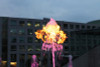 Hochdynamische Spezialeffekte: Gasflammen krönen variable Wasserstrahlen, die sich durch RGB-LED-Scheinwerfer individuell illuminieren lassen