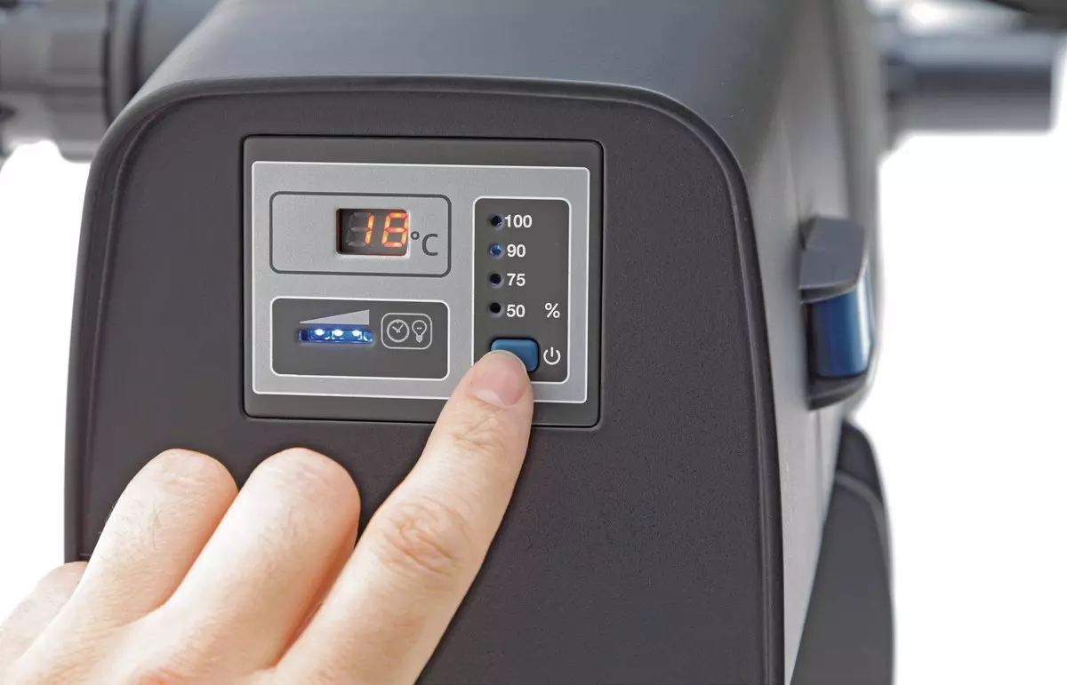 The control unit not only automatically shows you the current status of your lamps and the water temperature, it also allows you to adjust the output according to your needs