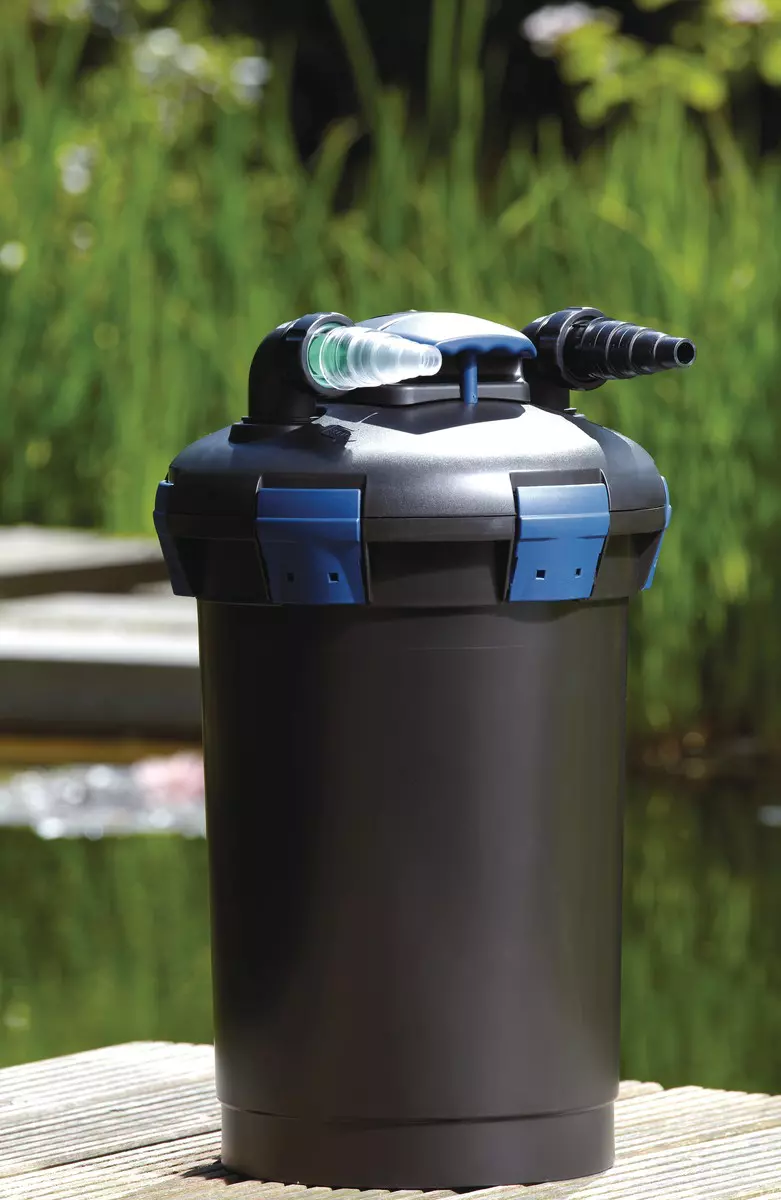 Oase BioPress filters use mechanical and biological filtration with ultraviolet light to keep water features clear