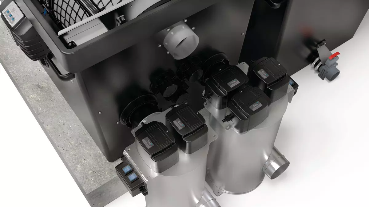 Sistema de filtración modular profesional para grandes estanques naturales y de natación de hasta 530 m³ y estanques koi de hasta 100 m³ para una calidad de agua extraordinaria en los espacios más reducidos – gracias a un rendimiento de filtración especialmente alto con funciones de control inteligentes y función de autolimpieza inteligente para una ausencia única de mantenimiento (módulo de filtro de tambor). Todos los ajustes se pueden controlar cómodamente a través de APP conectando el sistema al Sistema de Control OASE. La eliminación de contaminantes es aún más eficaz gracias al medio filtrante de alto rendimiento OASE PondPads y desarrolla su rendimiento óptimo en el nuevo proceso de lecho fluidizado (lecho móvil). Para los propietarios de estanques grandes que quieren más, las altas tasas de degradación de amonio, amoníaco, nitrito y nitrato a través de módulos de lecho móvil más grandes para hasta 150 litros de Hel-X, especialmente en combinación con los nuevos medios de biofiltro OASE PondPads, garantizan un rendimiento aún mayor.