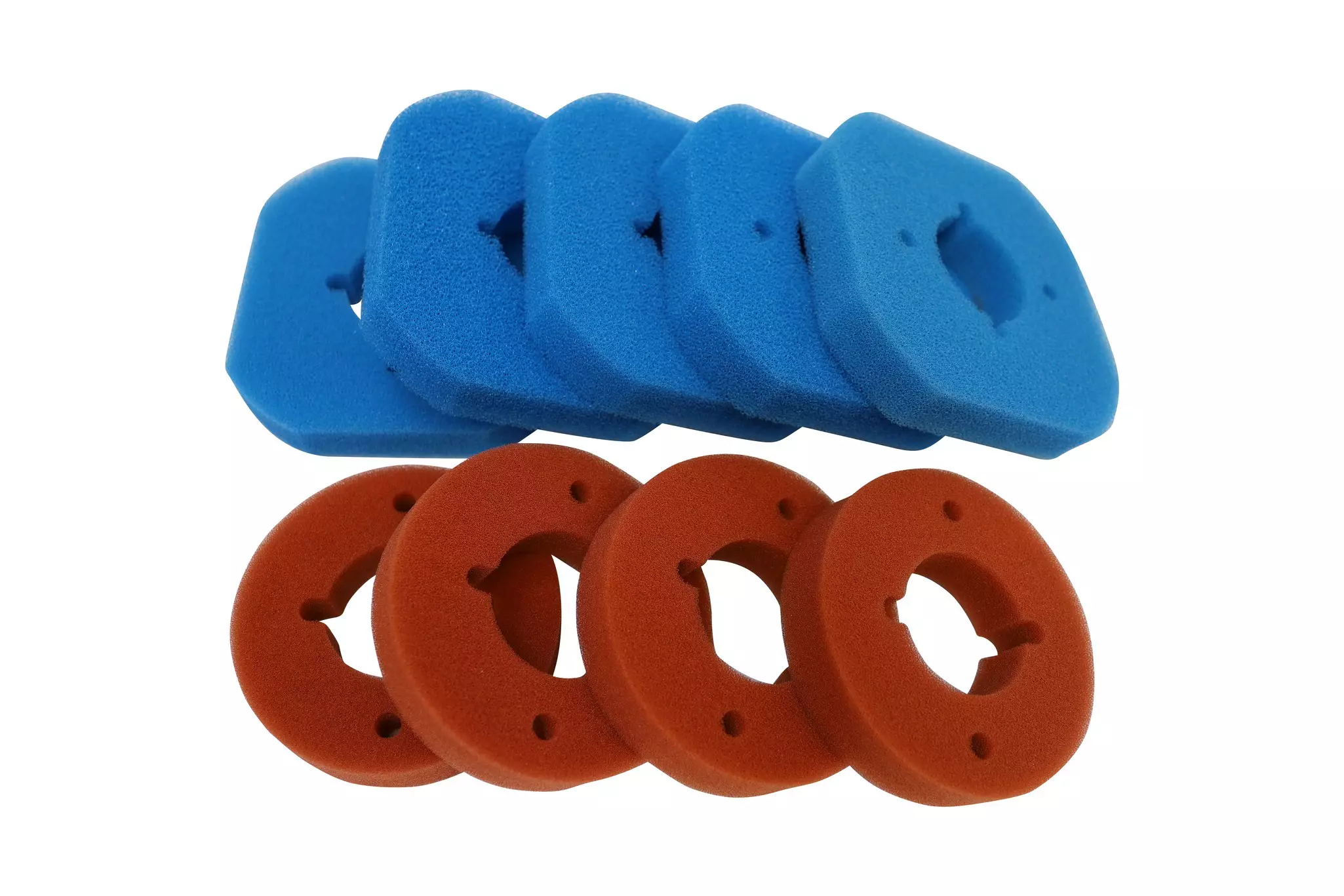 FiltoClear 11000-hez A szűrő szíve a szűrőszivacsok - különösen ez a szűrőszivacs-készlet, amely kis helyen egyesíti a kék és a piros szivacsot. A piros szűrőszivacsok finom szűrési tulajdonságokkal rendelkeznek, míg a kék szivacsok durva szűrési tulajdonságokkal. Ez azt jelenti, hogy a víz áramlási sebességétől függően kisebb vagy csak nagyobb részecskék akadnak meg a szivacsokban, és így kerülnek ki a tó vizéből. Azonban nemcsak a klasszikus szűrési funkciót látják el, hanem a legkisebb baktériumoknak is rengeteg életteret biztosítanak. Ez a kis biológiai oázis a vörös szűrőszivacsokban biztosítja a méreganyagok átalakulását a tóban: a mérgező anyagok ártalmatlan, de algákat stimuláló anyagokká alakulnak át (nitrifikáció), amelyek viszont természetes gázokká alakulnak át (denitrifikáció). A kék szűrőszivacsok további támogatást nyújtanak a denitrifikációs folyamatban.