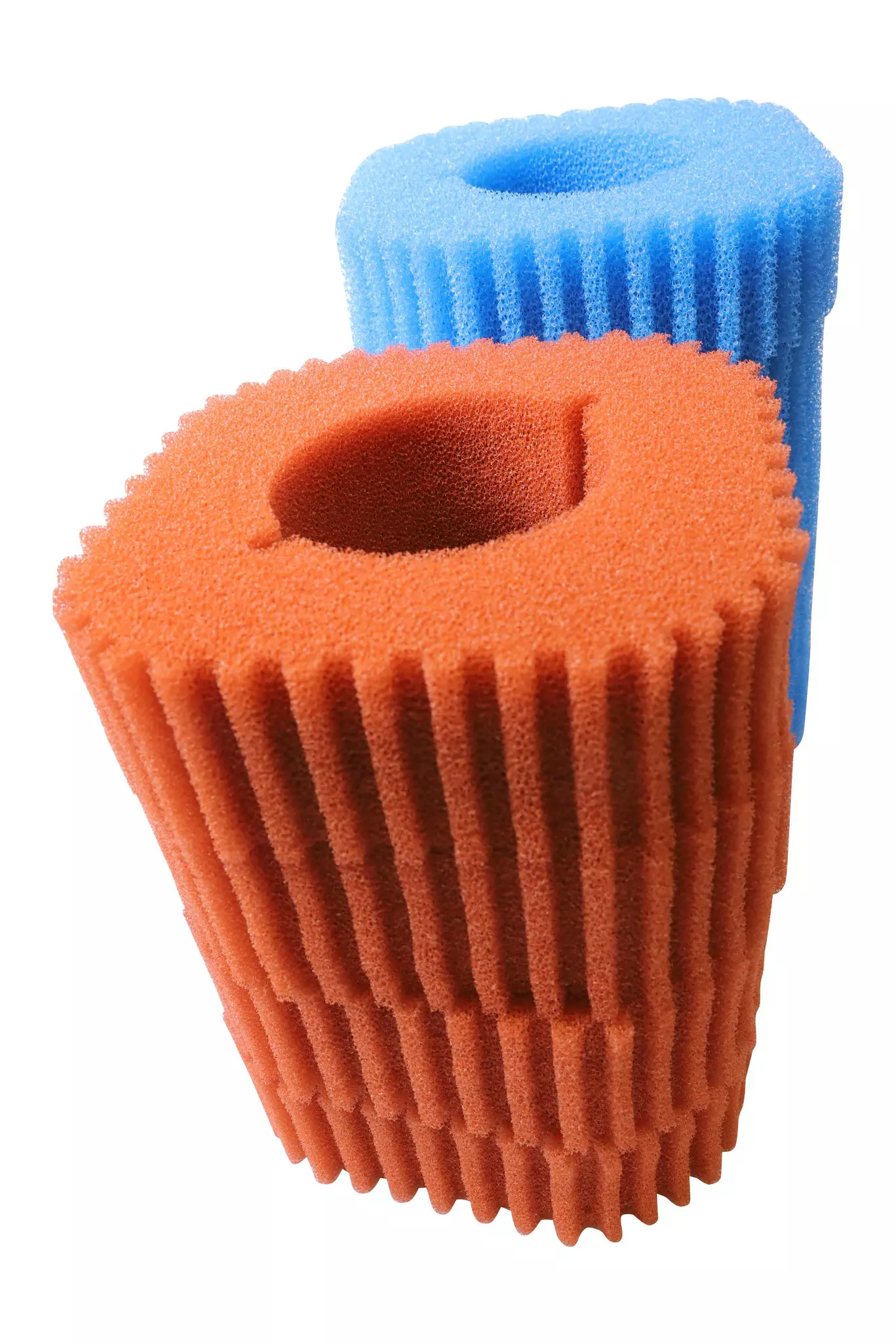 Do FiltoClear 20000/30000 Sercem filtra są gąbki filtracyjne - zwłaszcza ten zestaw gąbek filtracyjnych, który łączy niebieskie i czerwone gąbki na małej przestrzeni. Czerwone gąbki filtracyjne mają właściwości dokładnej filtracji, podczas gdy niebieskie mają właściwości filtracji zgrubnej. Oznacza to, że w zależności od natężenia przepływu wody, małe lub tylko większe cząsteczki zostają złapane w gąbki i w ten sposób usunięte z wody w stawie. Gąbki pełnią jednak nie tylko klasyczną funkcję filtracyjną, ale także zapewniają mnóstwo przestrzeni życiowej dla najmniejszych bakterii. Ta mała biologiczna oaza w czerwonych gąbkach filtracyjnych zapewnia konwersję toksyn w stawie: substancje toksyczne są przekształcane w nieszkodliwe, ale stymulujące glony substancje (nitryfikacja), które z kolei są przekształcane w naturalnie występujące gazy (denitryfikacja). Niebieskie gąbki filtracyjne zapewniają dodatkowe wsparcie w procesie denitryfikacji.